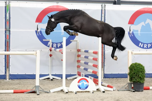 Bei den Springhengsten wurde der DIARADO-Sohn Django prämiert. Er wurde bei E. Koopmans geboren und stammt mütterlicherseits ab von Ferro.