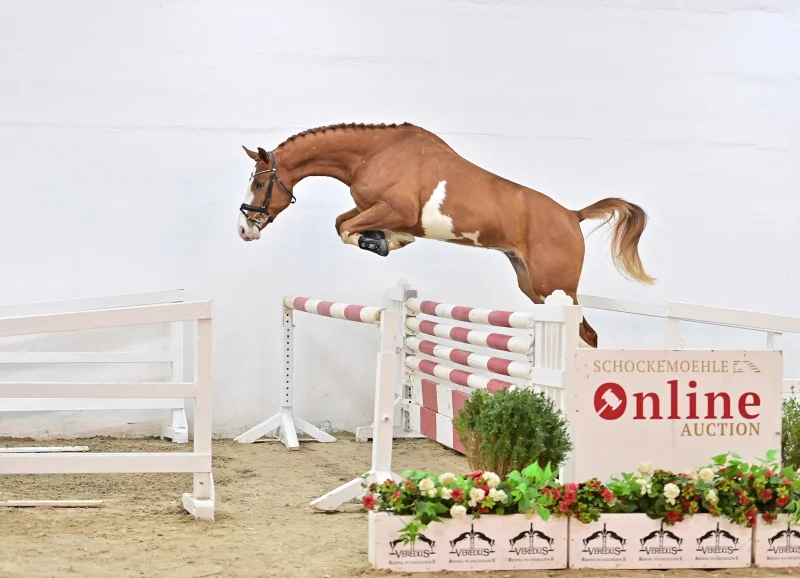 Zum bunten Auktionshöhepunkt avancierte Diabarit PS. Der Fuchswallach von DIABLUE PS wurde von Kunden aus Dänemark für 163.000 Euro ersteigert. Er ist Halbbruder zu den Top-Springpferden Coupe du Rouet, Freak Out und Chaccoletta.