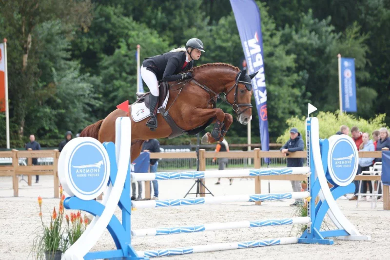 Sieg für den von CHACCO-BLUE abstammenden Cognac im Van Santvoort Makelaars Cup der vierjährigen Springpferde bei den KWPN Kampionschappen in Ermelo/NED. Vorgestellt wurde der von B. Janssens gezogene Fuchs von Cristel Kalf/NED.
