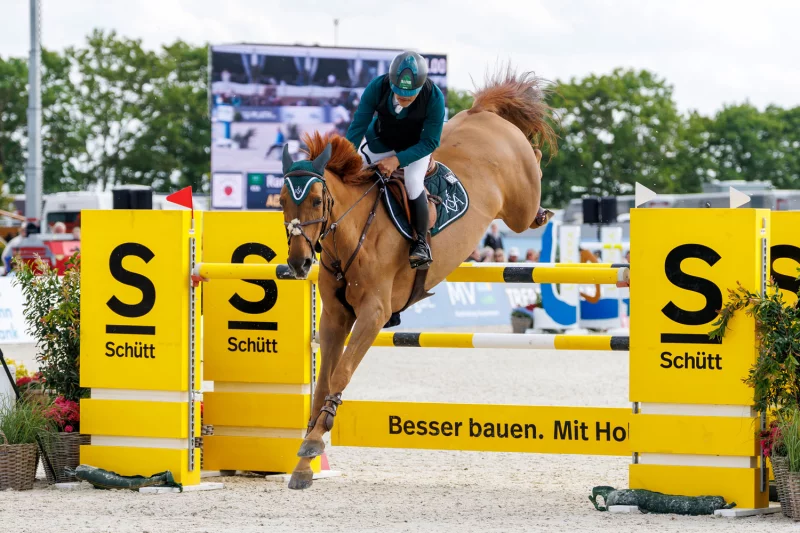 Der CHACOON BLUE-Sohn Billy Fern (Z.: Donall Barnwell) sprang unter dem Sattel des Iren David Simpson fehlerfrei auf den vierten Platz, während zwei von uns gezogene Nachkommen aus der Lewitz jeweils Rang 14 und 15 belegten: die CHAC BOY-Tochter Chalasanga PS blieb unter Christian Marini/ITA ebenso fehlerfrei wie der CHACCO-BLUE-Sohn Chacco Kan PS unter Adam Grzegorzewski aus Polen.