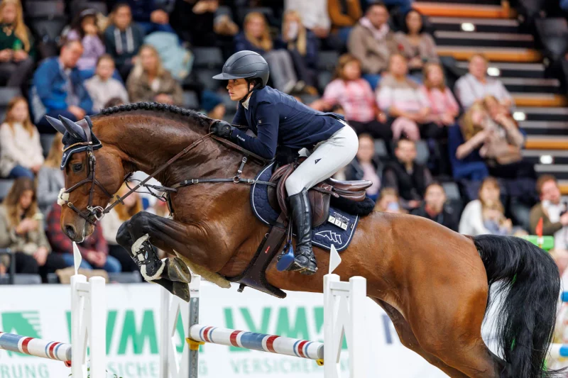 Bei seinem Saisondebüt 2026 sicherte sich unser MEGANUS PS (v. MESSENGER - Carthago Z, Z.: Gestüt Lewitz) unter dem Sattel von Alexa Stais/CYP einen hervorragenden dritten Platz im CSI2* Two Phase Special über 1,45 Meter am Samstag im belgischen Opglabbeek, wo die beiden mit zwei fehlerfreien Runden glänzten. Zuletzt brillierte das Paar international im prestigeträchtigen Sires of the World-Springen für gekörte Hengste in Lanaken/BEL, wo es das Auftaktspringen souverän für sich entscheiden konnte.