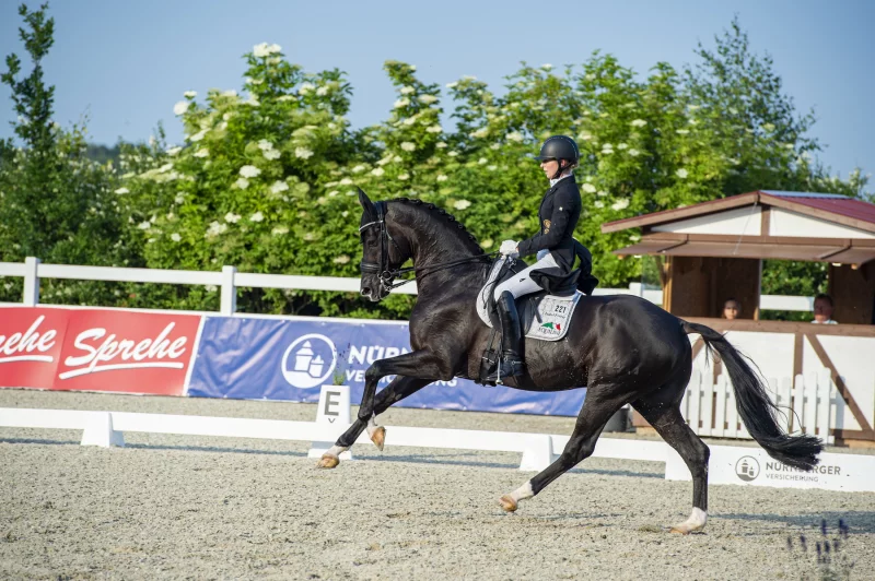Der Sohn des TOTILAS und seine Ausbilderin Isabel Freese konnten sich in der stark besetzten Prüfung in Ankum mit einer ausdrucksstarken Runde und über 70 Prozent den zweiten Rang sichern.
