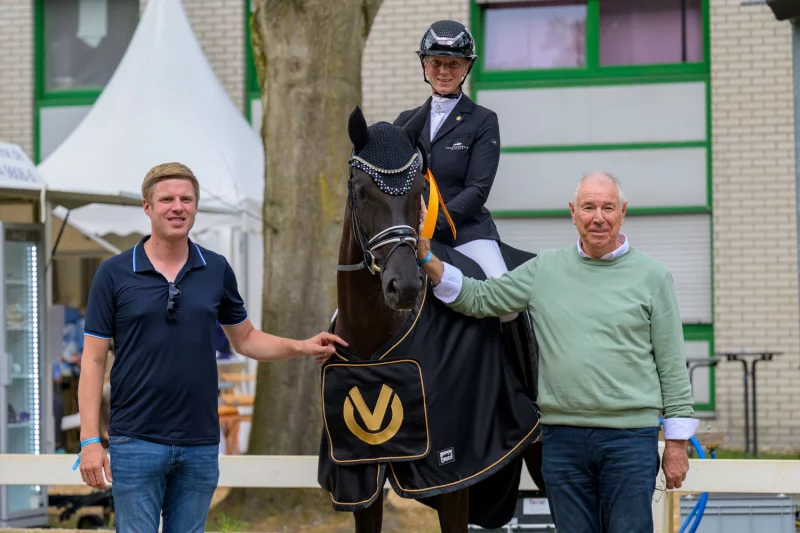 Platz drei in der ersten Abteilung ging an den ESCAMILLO-Sohn DSP Birkhof's Elocin unter Anna Casper (8,58), während der VITALIS-Sohn Veni Vedi Vici mit Jana Marie Thamm und der Wertnote 8,68 Platz zwei in der zweiten Abteilung belegte.